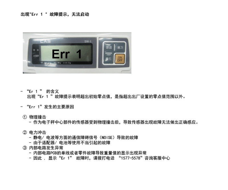 [SW-1S, SW-1W] 出現(xiàn)"Err 1 " 故障提示,無法啟動